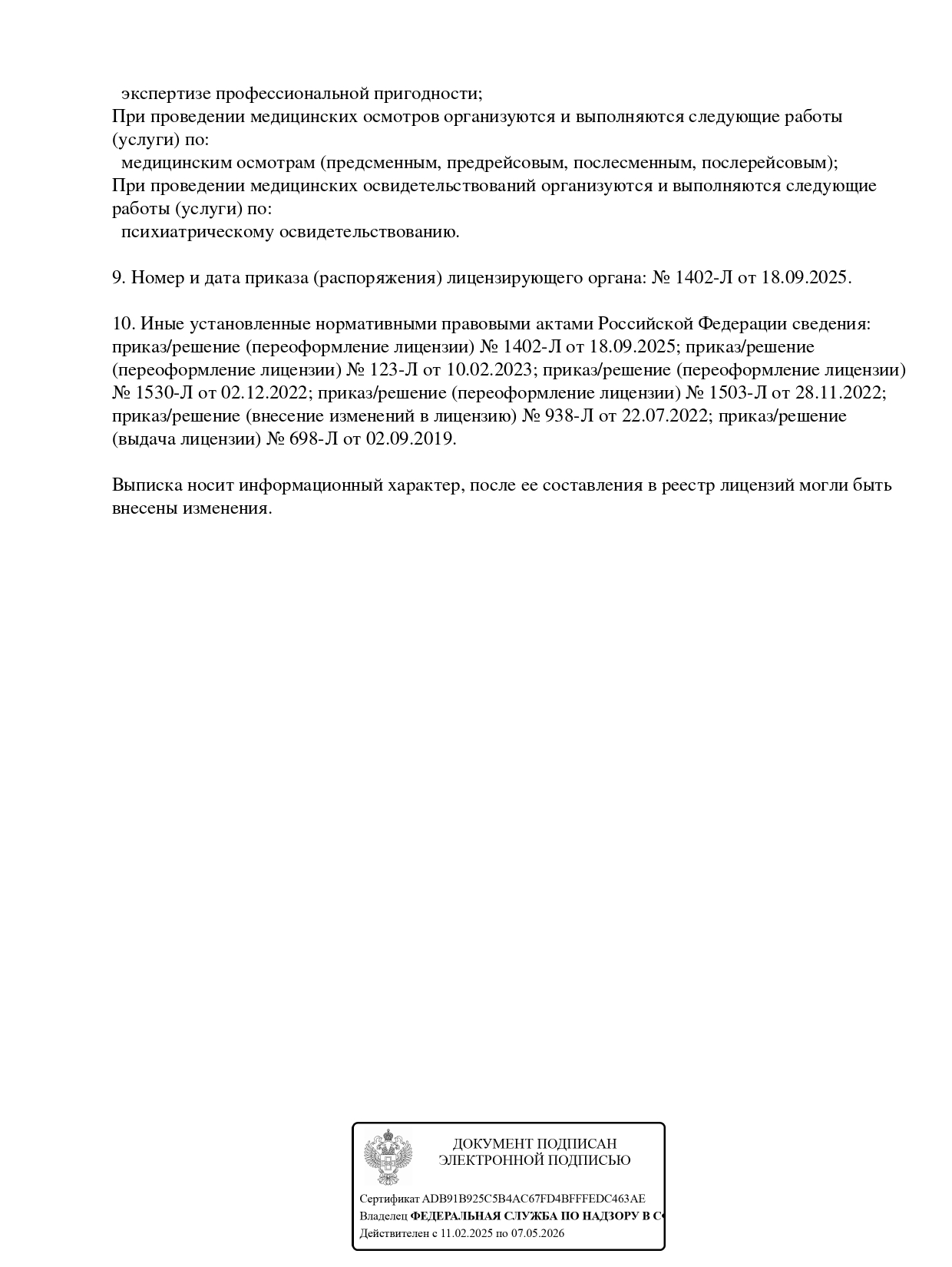 • Наличие лицензий, которые могут быть предоставлены по требованию пациента.
